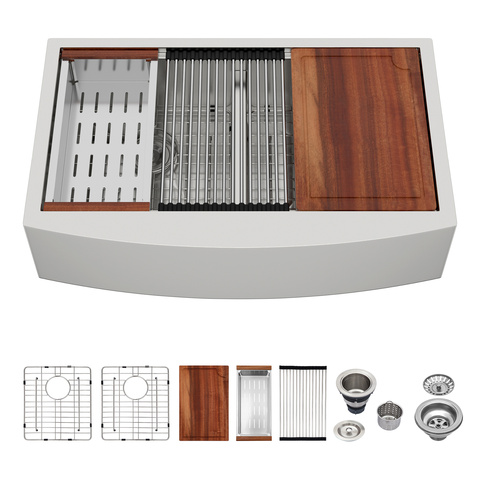 Workstation trang trại phong cách 36 inch T304 thép không gỉ Tạp dề phía trước bồn rửa bát đơn Bồn Rửa Nhà Bếp