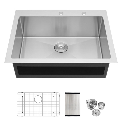 16 Đo 304 thép không gỉ hình chữ nhật Bồn Rửa Nhà Bếp 28*22*9 inch một bát một lỗ thiết kế truy cập cài đặt drainer
